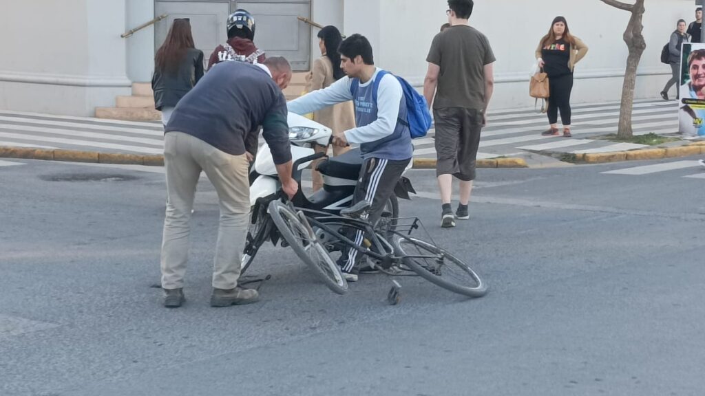 En la intersección de la Avenida Moreno y la Calle 9 de Julio, se produjo una colisión entre una bicicleta y una motocicleta. Afortunadamente, no se reportaron heridos de gravedad como resultado del incidente.