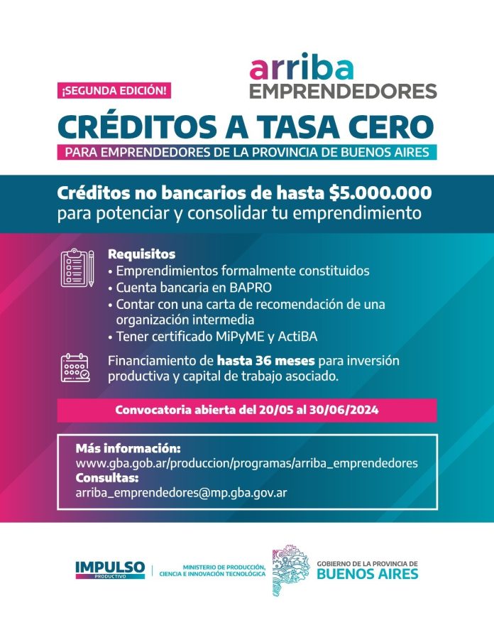Desde la Secretaría de Desarrollo Económico, Ciencia y Tecnología de la Municipalidad de Tres Arroyos impulsan la llegada del programa Arriba Emprendedores, para emprendimientos productivos registrados. La convocatoria está abierta hasta el 30 de este mes de junio, y ofrece la posibilidad a los vecinos y vecinas emprendedores de acceder a créditos de hasta 5 millones de pesos a tasa 0.