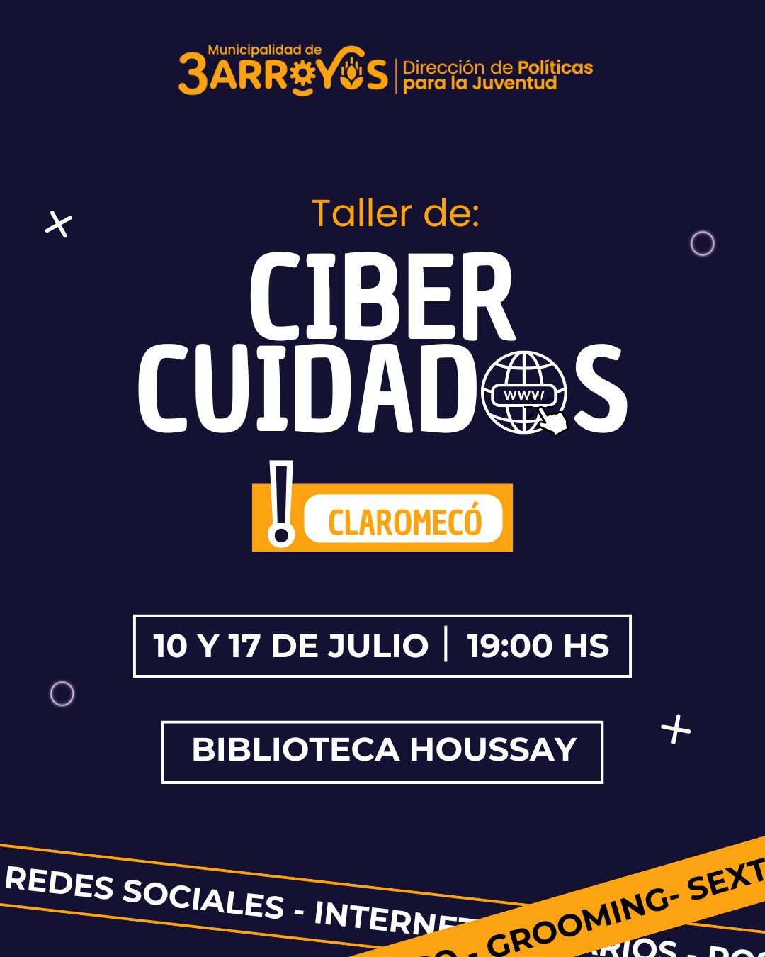 La Dirección de Políticas para la Juventud y el Punto Digital anuncian taller de cibercuidados en Claromecó.