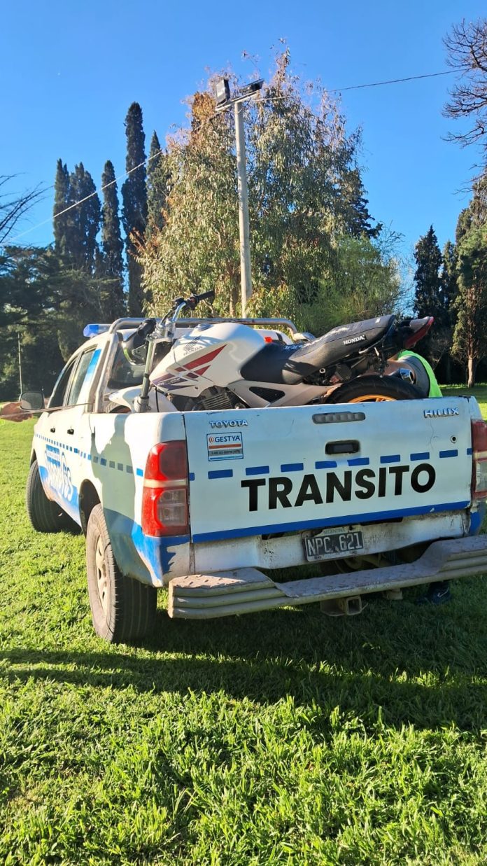 Gracias a este aviso y al rápido accionar del personal de Tránsito de la Secretaría de Seguridad, se logró interceptar un motovehículo que circulaba con escape antirreglamentario a alta velocidad.