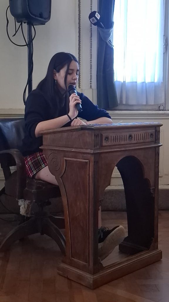 Previo al inicio de la sesión, la estudiante Mía Zurita utilizó la Banca Ciudadana en representación de sus compañeros de 5° año del Colegio Holandés para presentar un proyecto para la conservación como bien patrimonial del predio del Ferrocarril de Tres Arroyos, proyectos que ya se encuentran en tratamiento en la Comisión Municipal de Patrimonio.