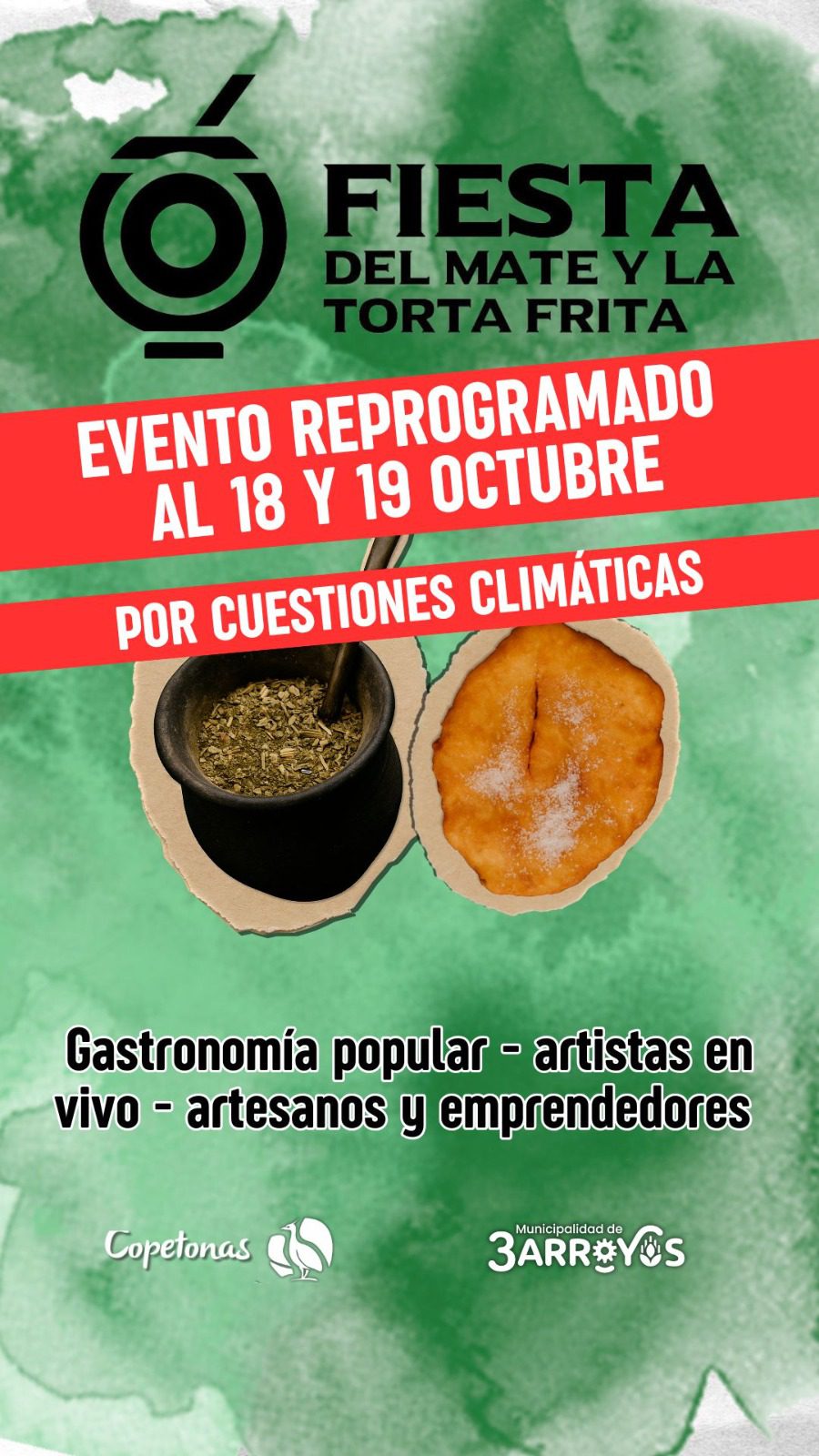 La Municipalidad de Tres Arroyos informa que, por cuestiones climáticas, se postergará la realización de la Fiesta del Mate y la Torta Frita.
