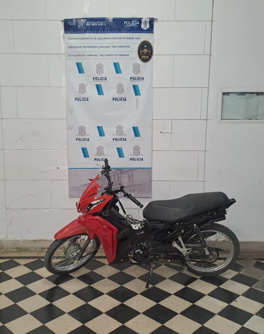 En el lugar, los efectivos constataron que la moto Zanella roja, sin dominio colocado, era conducida por un menor de 15 años. Al verificar los datos en el sistema informático, se comprobó que el rodado tenía pedido de secuestro activo desde el 14 de mayo de 2025, por un hurto de motovehículo ocurrido en el Departamento Judicial de General Pueyrredón, siendo Benjamín Delacroix el damnificado.