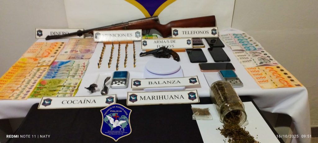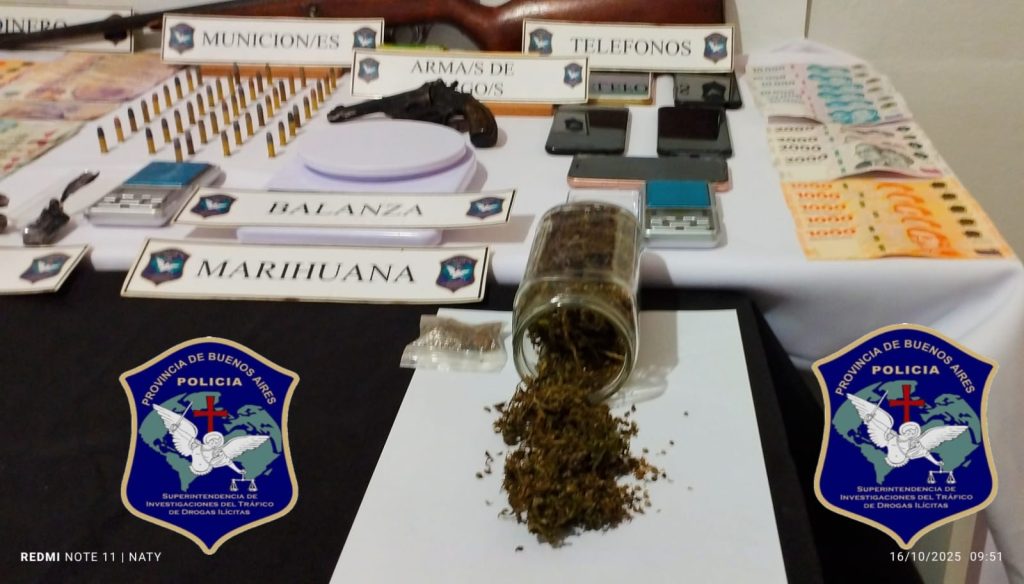 A raíz de los resultados obtenidos, la Fiscalía interviniente dispuso la aprehensión de un hombre identificado como Sergio Valdez, quien quedó imputado por el delito de ‘tenencia de estupefacientes con fines de comercialización’, mientras se continúa con las tareas investigativas para esclarecer la totalidad de los hechos y posibles vinculaciones.