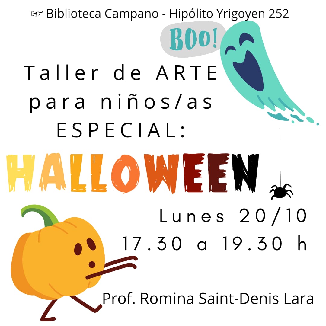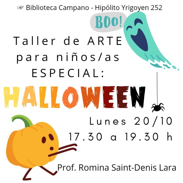 El lunes 20 de octubre en el horario de 17.30 a 19.30 hs. se realizará en la Fundación Campano el taller ‘Banderines de Halloween’, a cargo de la Profesora de Arte Romina Saint Denis Lara. El objetivo es compartir un momento de juego, creatividad y expresión artística donde cada participante podrá diseñar sus propios banderines personalizados, y llevarlos para decorar su casa o su habitación. Así ambientamos el hogar con la magia y la diversión de Halloween. Es un taller arancelado con inscripción previa. Los cupos son limitados. El arancel incluye los materiales y una merienda.
