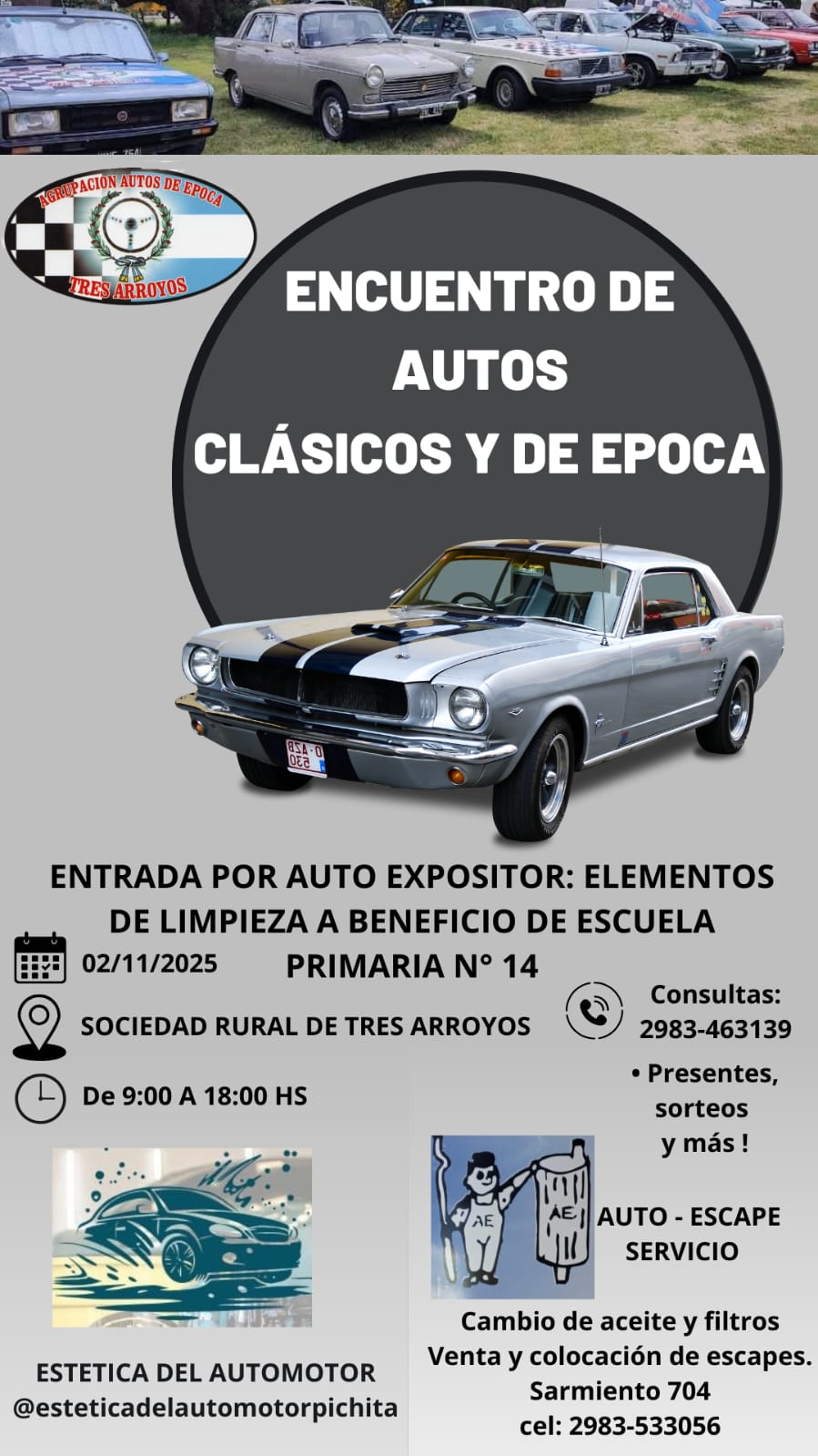 El próximo domingo 2 de noviembre, la Sociedad Rural de Tres Arroyos será escenario del 17° Encuentro de Autos Clásicos y de Época, organizado por la Agrupación Autos de Época Tres Arroyos (AADETA).