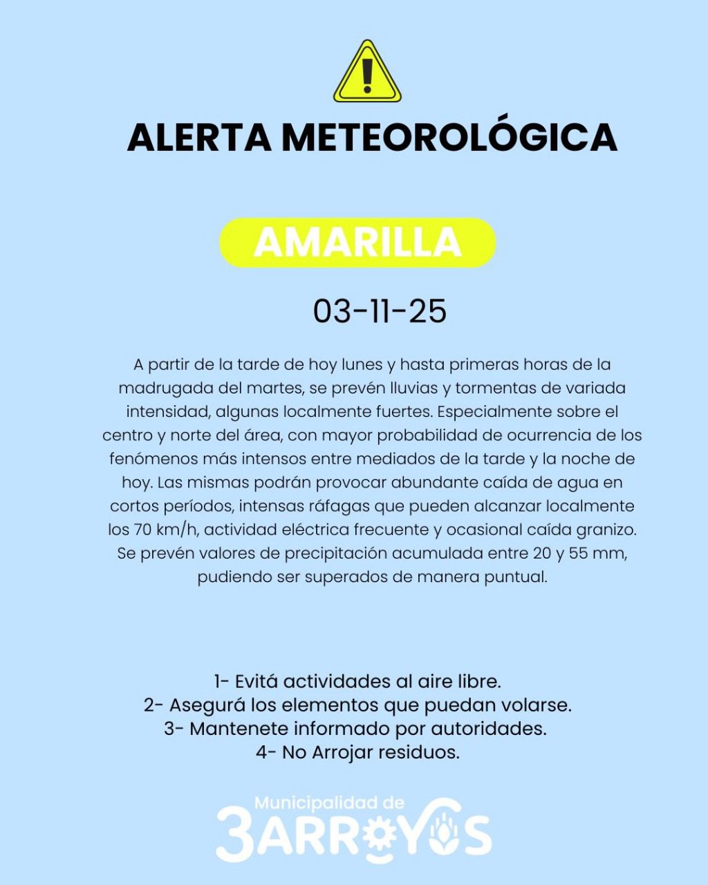 El Servicio Meteorológico Nacional emitió una alerta amarilla para nuestra zona, vigente desde la tarde de este lunes y hasta las primeras horas del martes.
