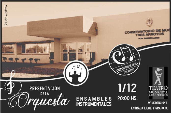 El Conservatorio de Música de Tres Arroyos informó que el próximo lunes 1 de diciembre llevará adelante su tradicional Concierto de cierre de año. La presentación será a las 20 en el Teatro Municipal, ubicado en Av. Moreno 645.