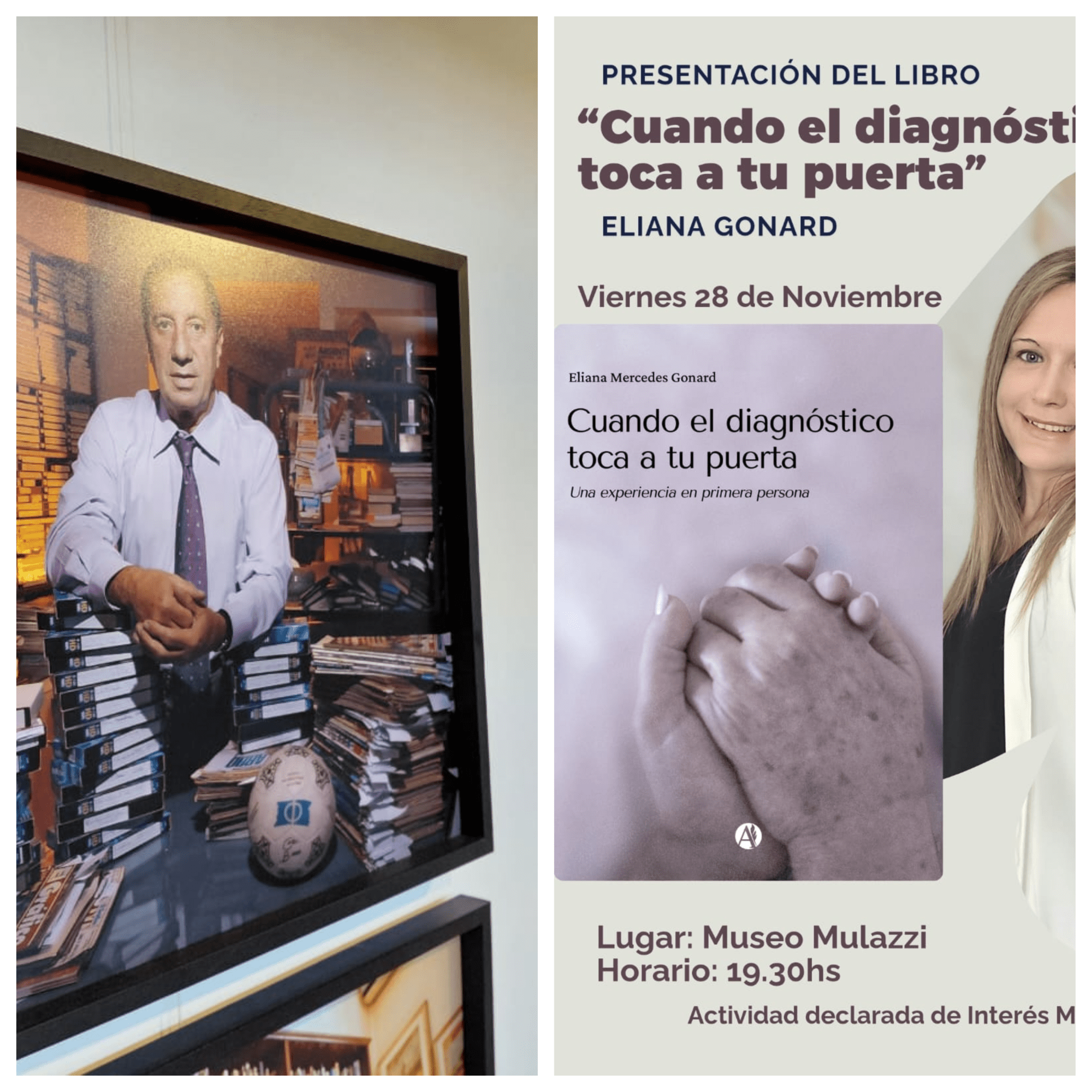 El Museo Municipal José A. Mulazzi invita a la comunidad a la presentación del libro “Cuando el diagnóstico toca a tu puerta”, escrito por la psicóloga Eliana Gonard. La actividad tendrá lugar este viernes 28 de noviembre a las 19.30 en la Sala Mayor del museo, con entrada libre y gratuita. La propuesta fue declarada de Interés Municipal.
