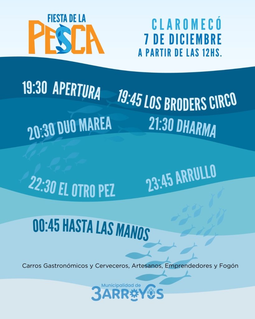 La Municipalidad de Tres Arroyos invita a vecinos, vecinas y turistas a disfrutar de una nueva edición de la Fiesta de la Pesca, que se realizará el domingo 7 de diciembre en Claromecó, a partir de las 12 horas.