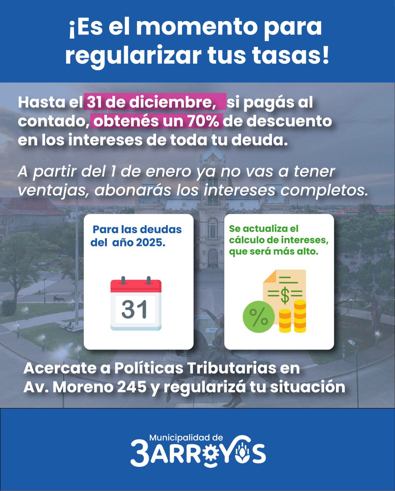 La Municipalidad de Tres Arroyos informa que a partir del 05 de enero se dará inicio al Operativo Verano en la localidad de Claromecó, con el objetivo de facilitar el cobro de tasas durante la temporada estival.