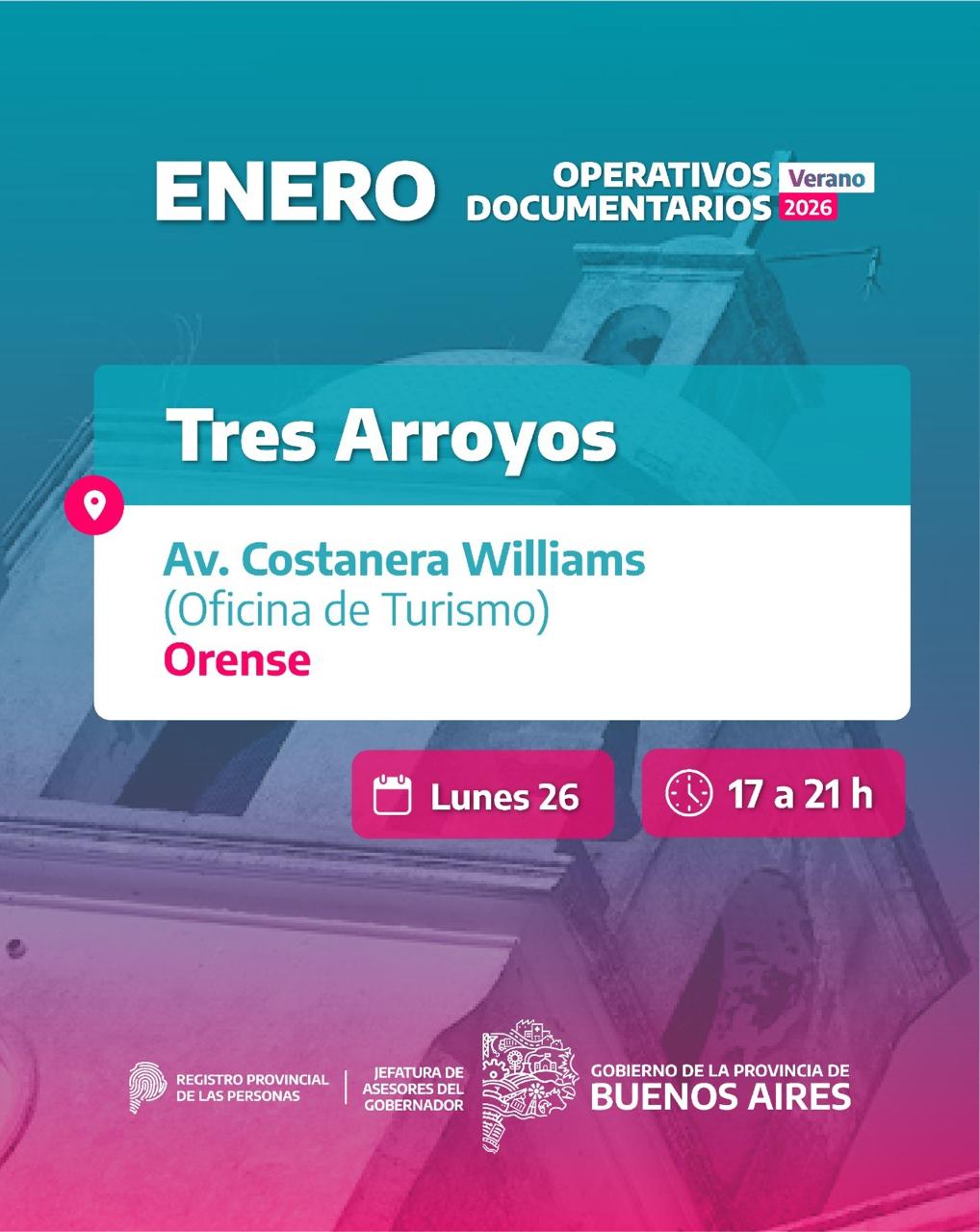 Lugar: Oficina de Turismo – Av. Costanera Williams