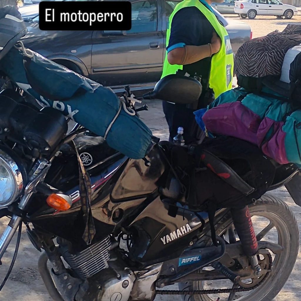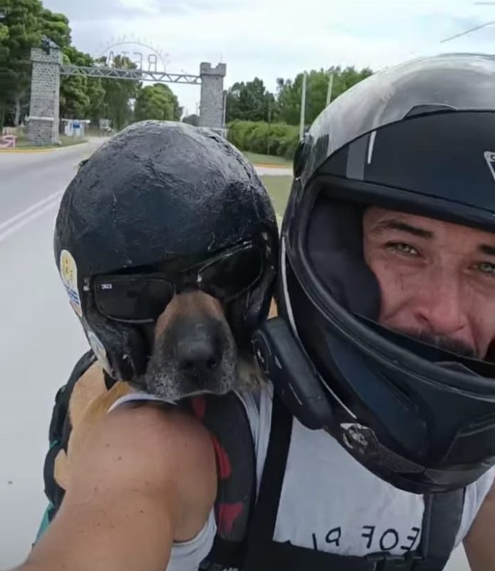 El viajero argentino comparte sus recorridos a través de plataformas digitales, donde muestra distintas rutas del país acompañado por su mascota, que viaja equipada con una mochila especial de transporte y accesorios de seguridad diseñados para animales, como casco y lentes.