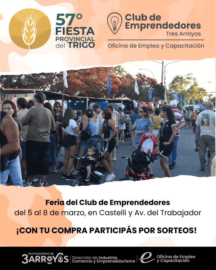 En el marco de la 57° Fiesta Provincial del Trigo, la Oficina de Empleo y Capacitación, dependiente de la Dirección de Industria, Comercio y Emprendedurismo de la Municipalidad de Tres Arroyos, anunció la realización de la Feria del Club de Emprendedores.