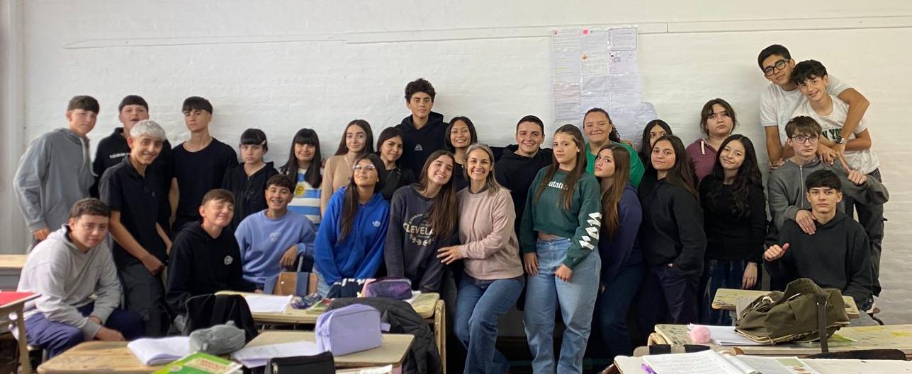 Estudiantes de 4°1° Sociales con la docente Raquel Manterola