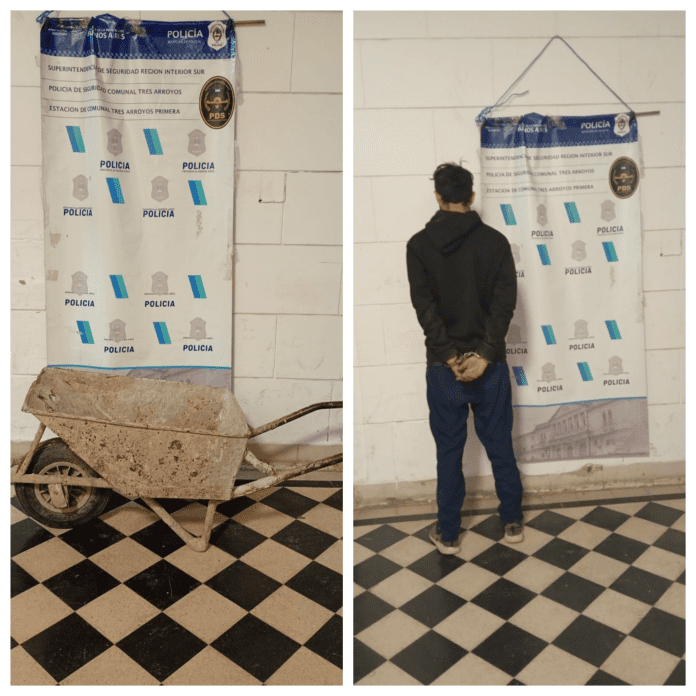 Según se informó, el sujeto —identificado como Alexis Iván Gauto— había ingresado al lugar tras dañar un ventiluz ubicado a aproximadamente 1,80 metros de altura. Una vez en el interior, logró sustraer una carretilla perteneciente a un hombre de 51 años, con la intención de llevarse más elementos.
