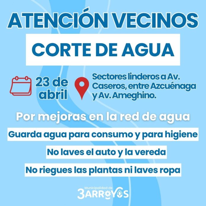 El corte afectará principalmente a los sectores linderos a Av. Caseros, entre Azcuénaga y Av. Ameghino. No obstante, se informa que podrían registrarse inconvenientes o baja presión en otras zonas cercanas.