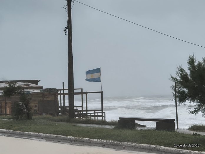 Sobre el mediodía de este domingo la costa bonaerense atraviesa, especialmente en Balneario Orense, Claromecó y Reta, un temporal de vientos intensos debido a un ciclón extratropical que se profundiza sobre el Mar Argentino.