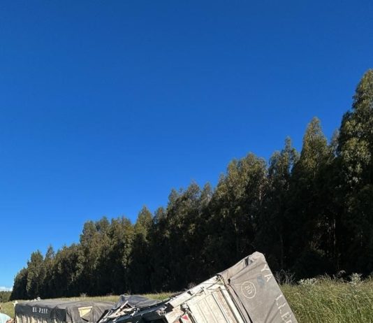 Un camión perdió el control y volcó el acoplado en la Ruta 228